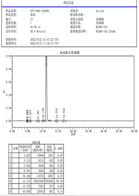 喜樹堿    黃體酮    噻菌靈/噻苯咪唑    硫酸新霉素    紅霉素